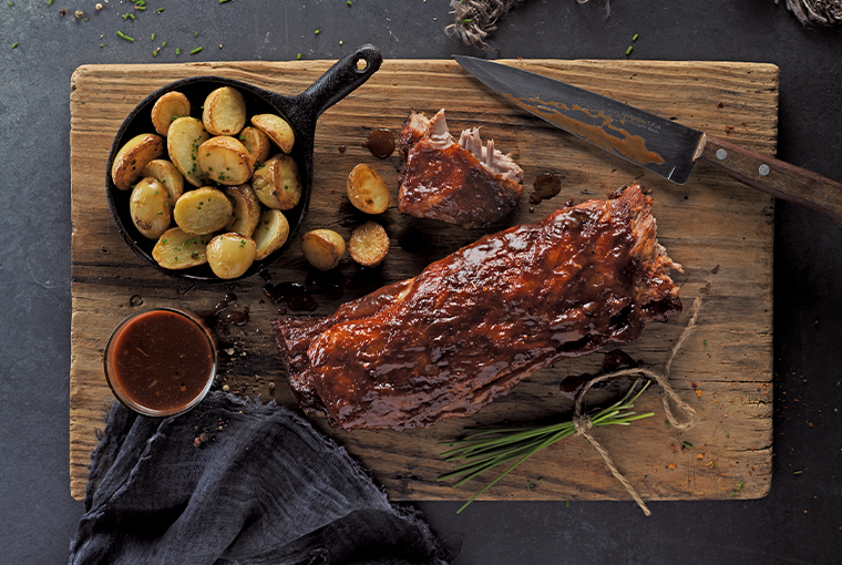 Una vez lograda la cocción de la carne laqueada (2 horas aprox.), retirar y servir el pechito acompañado de los papines cortados a la mitad, espolvoreados con ciboulette picado y un hilo de Aceite de Oliva Intenso Natura.