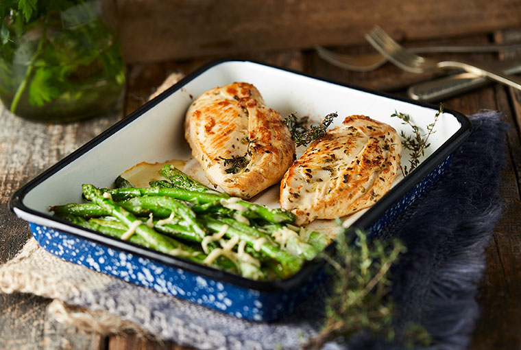 Pollo con espárragos gratinados