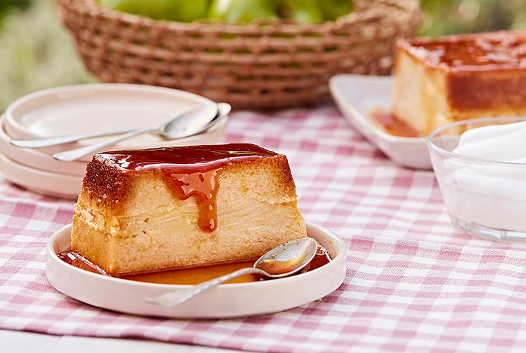 Preparar el caramelo derritiendo el azúcar suavemente sin que se queme. Una vez logrado el punto caramelo, verter sobre una budinera previamente lubricada con Rocío Vegetal Natura y cubrir bien. Reservar.