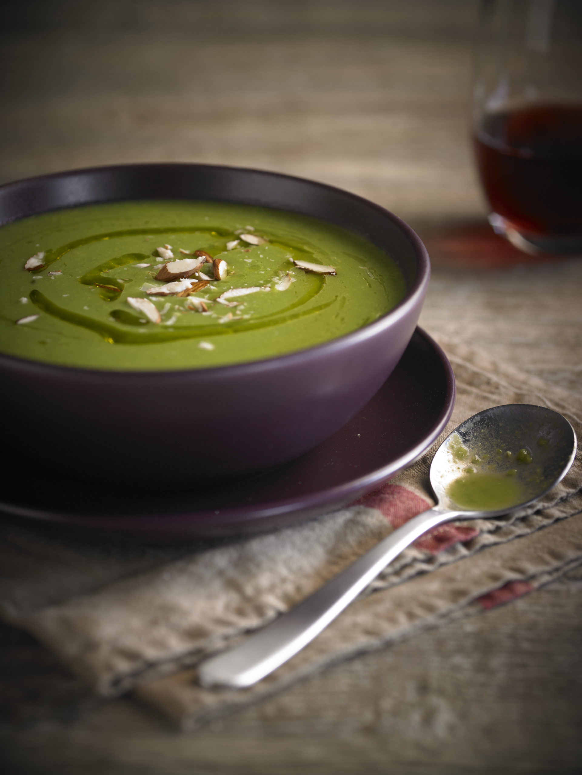 Volver a llevar la preparación a la cacerola y calentar la sopa a fuego mínimo durante uno o dos minutos. Retirar y servir en cada plato. Espolvorear con las almendras o nueces picadas y terminar con unos hilitos del Aceite de Oliva Natura selección. Servir bien caliente.
