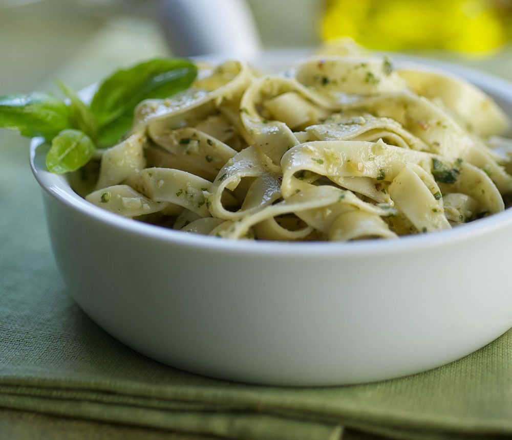 Colocar en una fuente, cubrir con el pesto y servir bien caliente.