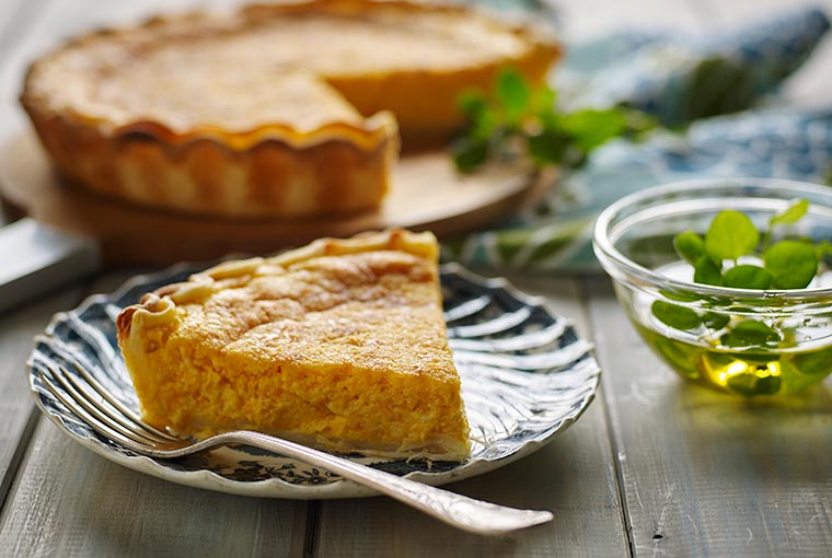 Verter el relleno sobre la tarta y llevar a cocción a horno medio durante media hora o hasta que esté dorada. Retirar, dejar entibiar y servir.