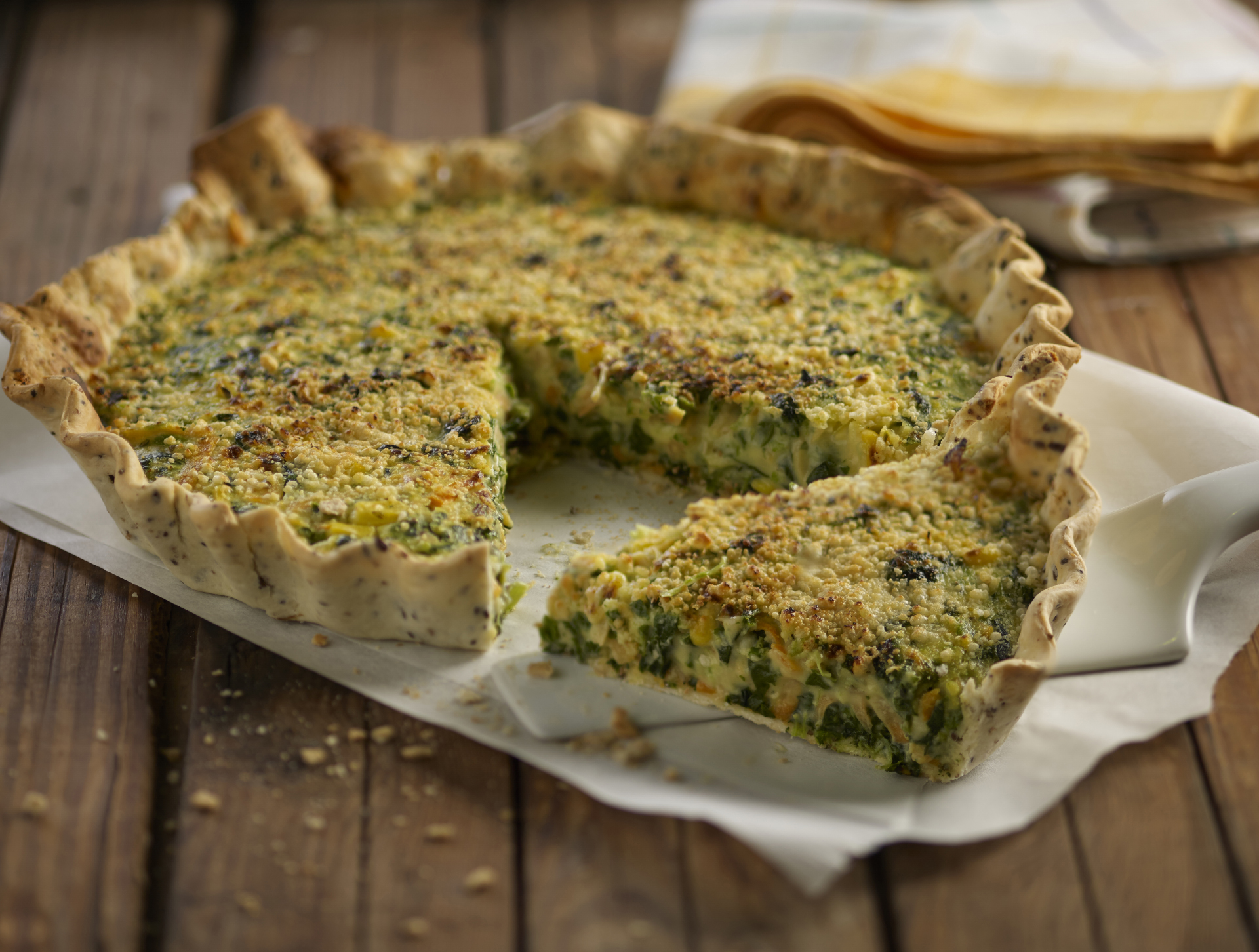 Dejarla descansar dentro de una bolsa de polietileno o en un bol con tapa alrededor de 20 minutos. Luego estirarla, lubricar un molde con Rocío Vegetal Natura y cubrirlo con la masa. Rehogar la cebolla con el Aceite Puro de Girasol Natura, luego saltear las hojas de espinaca con provenzal, mezclar con el resto de los ingredientes del relleno y disponerlo dentro del molde forrado con la masa.