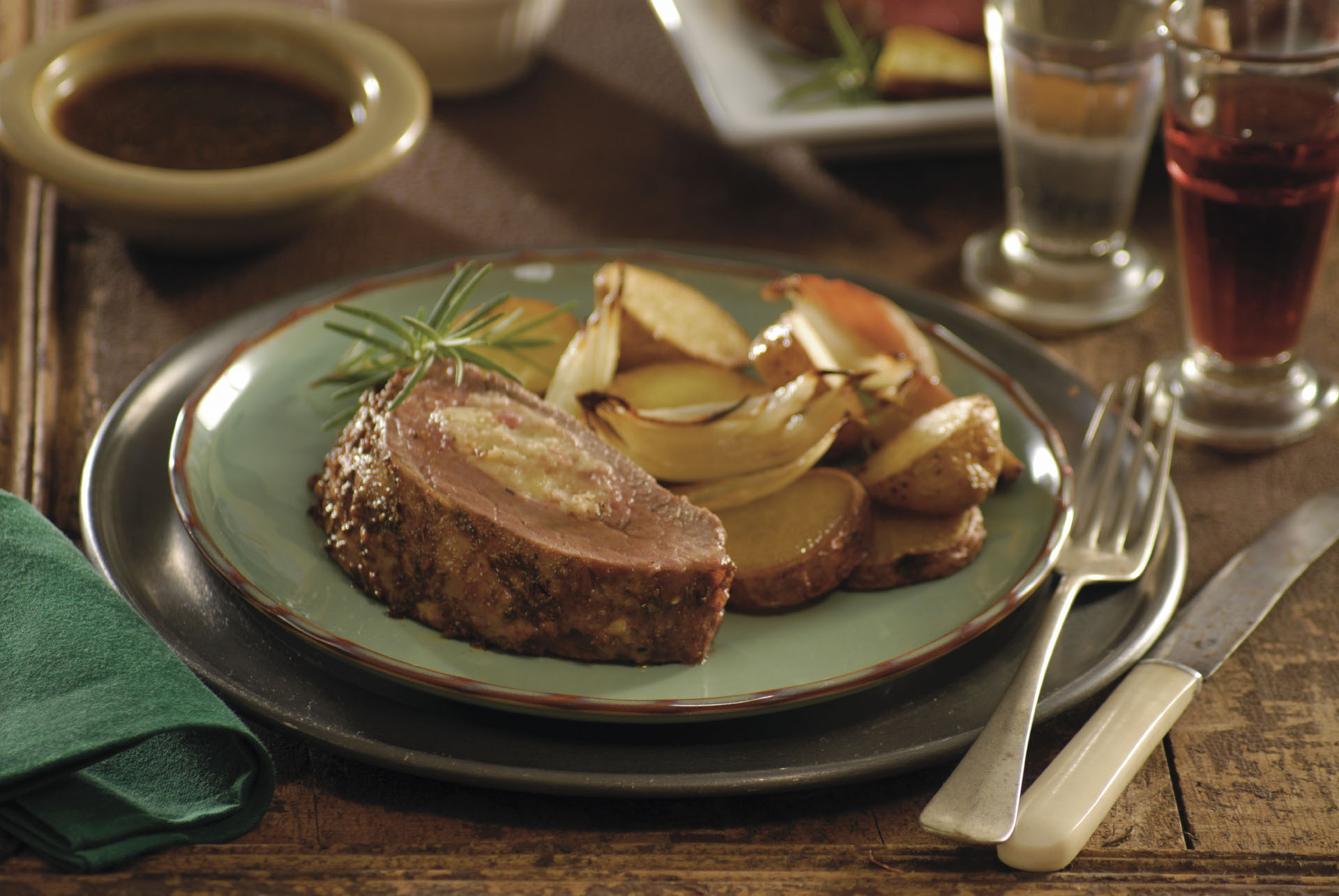 Retirar toda la grasa visible de la carne, hacerle un corte en forma de bolsillo y acomodar el relleno, de forma tal que quede a unos 6 cm. del borde ya que al cocinarse la carne se reduce.