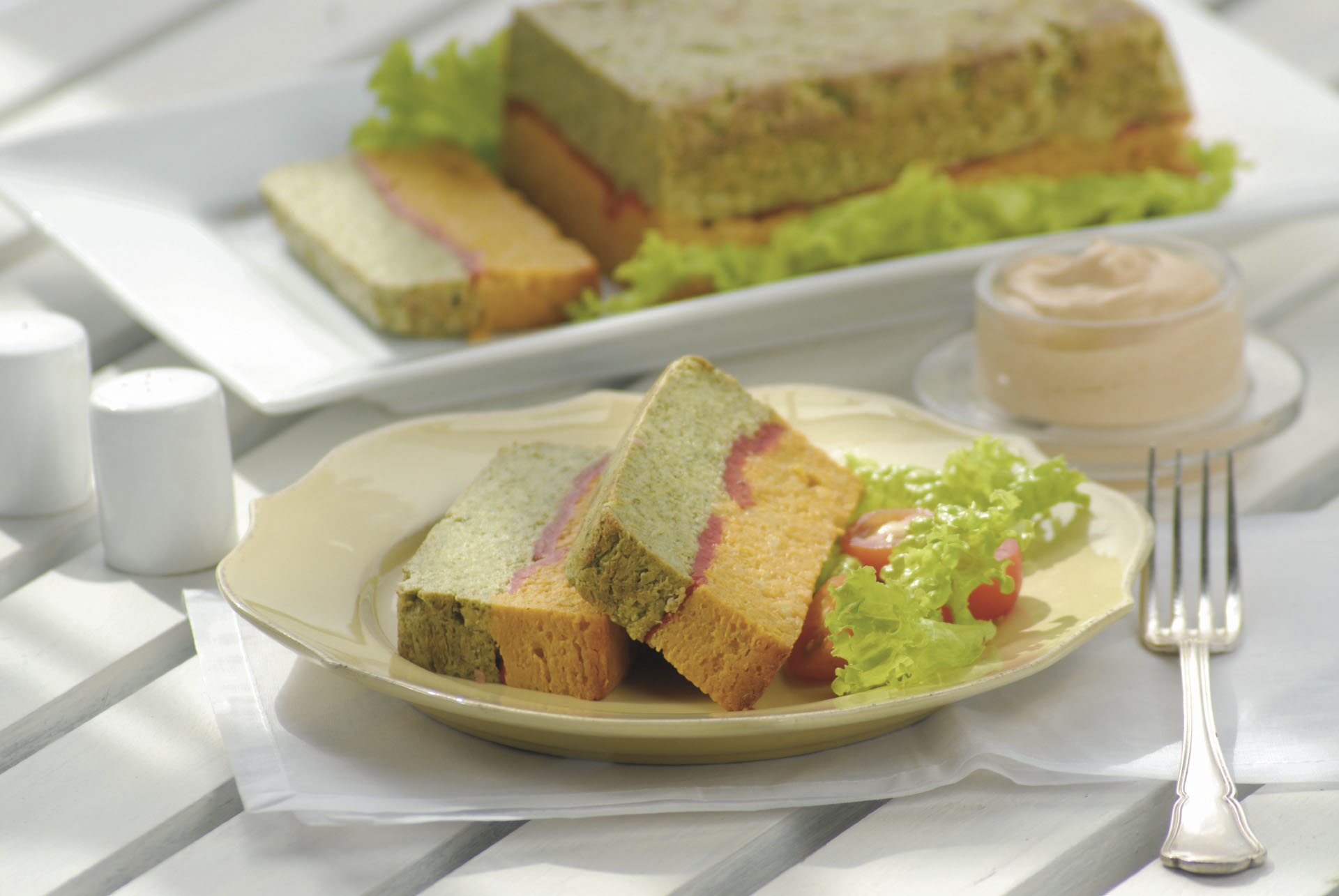Terrina de brócoli, calabaza y morrón con mayonesa al tomate