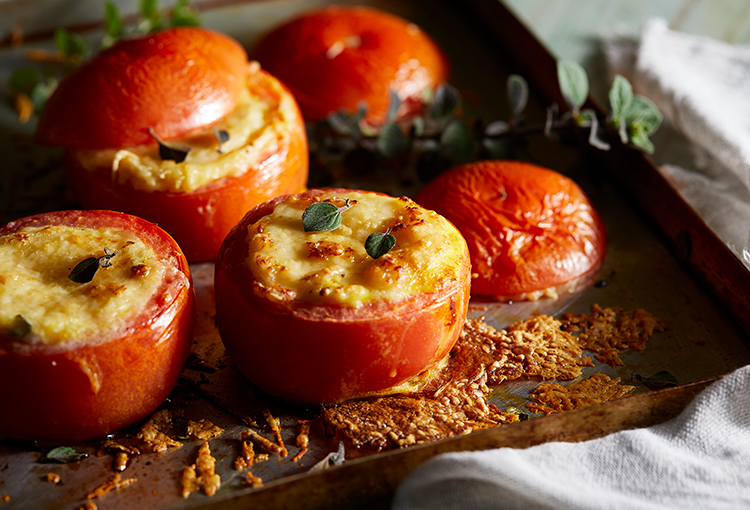 Lubricar una fuente con Aceite Puro de Girasol Natura, disponer los tomates y llevar a horno medio por 10 minutos.