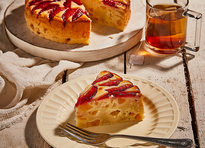 En un bowl mezclar los huevos, el azúcar, el Aceite de Puro Girasol Natura, la leche y la ralladura de limón hasta logra una mezcla homogénea. Añadir de a poco la harina tamizada con el polvo de hornear, integrar sin que queden grumos. Por último, incorporar las ciruelas en cubos y mezclar.