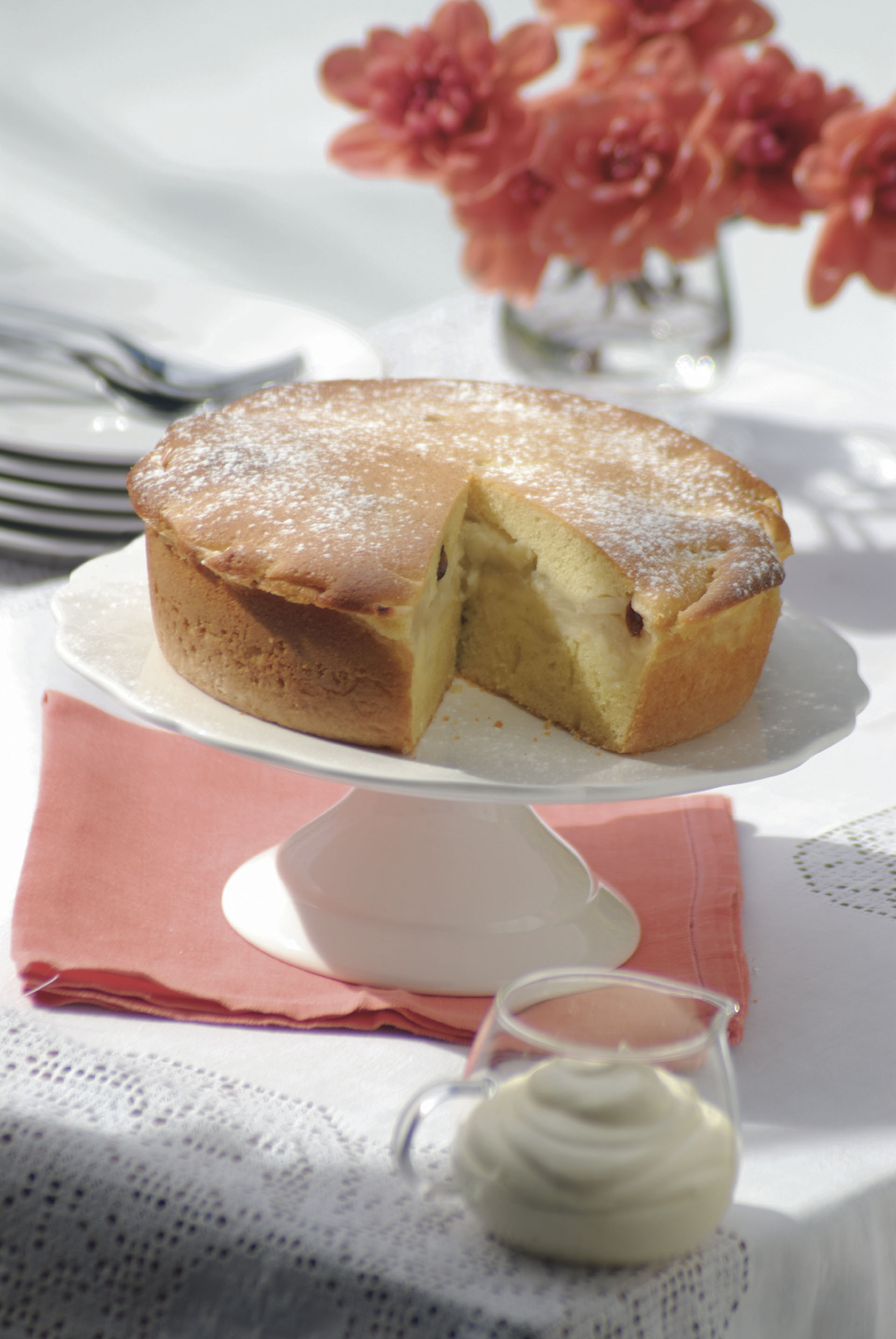 Retirar, dejar entibiar y luego enfriar en la heladera, espolvorear con azúcar impalpable. Cortar y servir si se desea con un copete de crema chantilly.