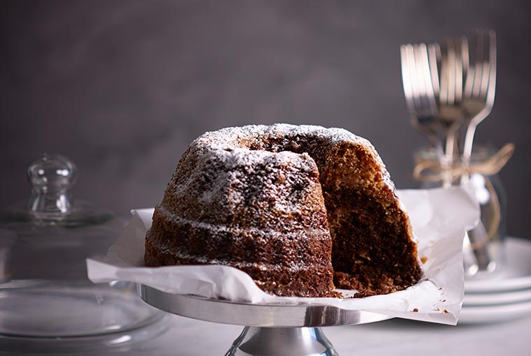 Lubricar un molde para bizcochuelo con Rocío Vegetal Natura y luego espolvorearlo con un poco de harina. Volcar en el molde intercaladamente ambas preparaciones, mezclarlas con un cuchillo para generar el efecto marmolado. Llevar a horno medio durante 35 a 40 minutos o hasta que introduciendo un palillo de madera, éste salga seco. Retirar, dejar enfriar, cortar y servir.