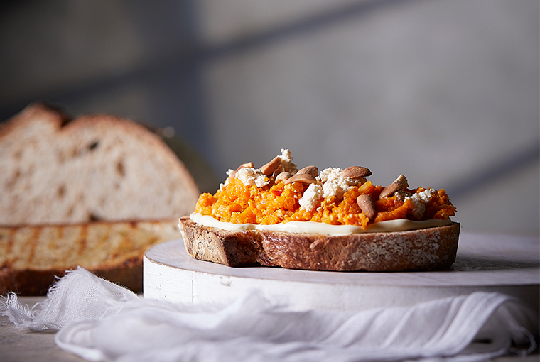 Para el armado de los tostones, untarlos con una capa fina de Mayonesa Natura, distribuir por encima la pasta de tofu en modo parejo, decorar con el maní salado y romero fresco. Servir.