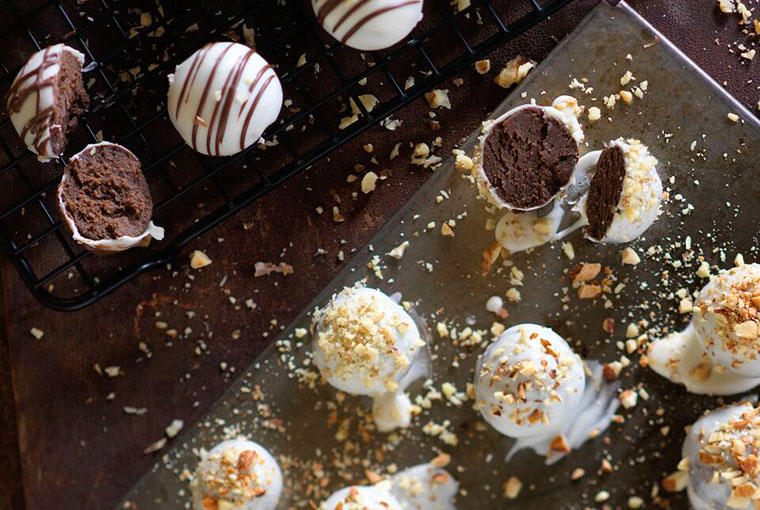 Para la cubierta fundir el chocolate blanco en el microondas de a tandas de 30 en 30 segundos, una vez fundido añadir unas gotitas de Aceite de Girasol Natura. Pasar, de a una, las trufas por el chocolate fundido, colocarlas sobre papel manteca y llevarlas durante dos horas a la heladera.
