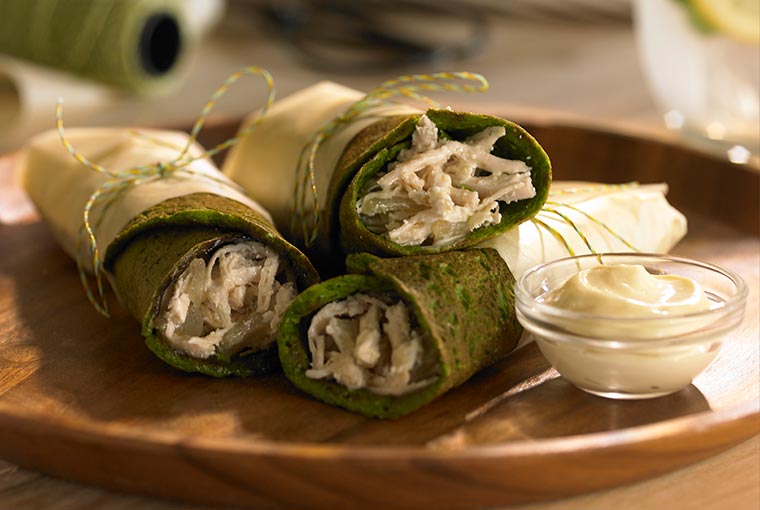 Rellenar cada wrap con la mezcla de pollo, enrollarlo y servir.