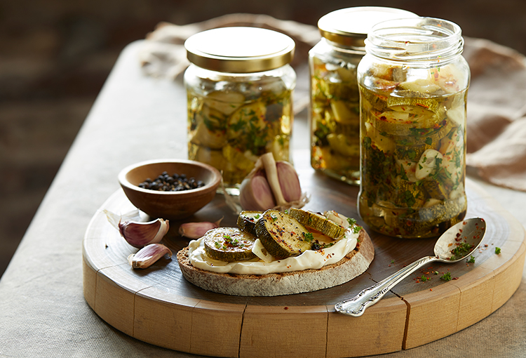 Llenar el frasco con los zucchinis condimentados y rellenar con el Aceite Puro de Girasol Natura hasta cubrirlos bien, dejar reposar unos minutos y rellenar con otro poco de aceite de ser necesario. Cerrar el frasco, conservar un par de días antes de consumir para garantizar que los zucchinis absorban todos los sabores de la conserva.